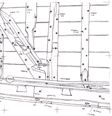 | Na de opgraving zijn de veldtekeningen in inkt overgetrokken. Voor de wetenschappelijke publicatie zullen de archeologen ze nader uitwerken. |