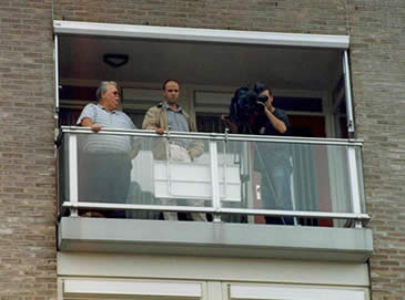 Persbureau Reuters filmt vanaf het balkon van de familie Vermeulen. [Foto: Hazenberg Archeologie Leiden]